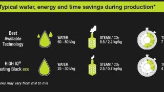 - Reduced environmental footprint, using 50% less water and energy in processing