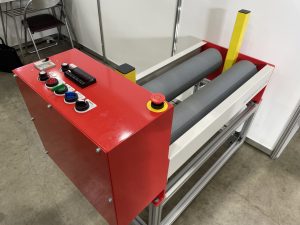 Marunaka Shoten, which also manufactures and sells independently developed textile machinery such as winding devices, once again focused on its large-diameter winding device MTCW. This device winds woven fabric under constant tension. Controlled by a load cell (which converts mechanical force into electrical signals), it ensures consistent winding and stable quality. “Many existing customers visited, but there were also consultations from companies considering a shift from apparel to industrial materials, showing interest in large-diameter winding,” the company explained.